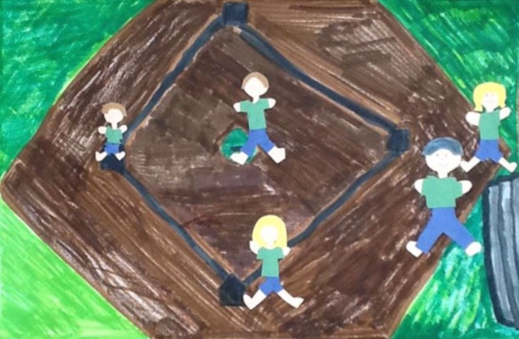 We headed from there into the commons area and ran into the art teacher and got a sneak peek of the mask he made and the art work on display which again broke my heart because not one bit of it was done by him. The theme was baseball which I have no doubt in my mind he did choose. But that coloring and artwork was not his. So again a big tug at my momma heart.