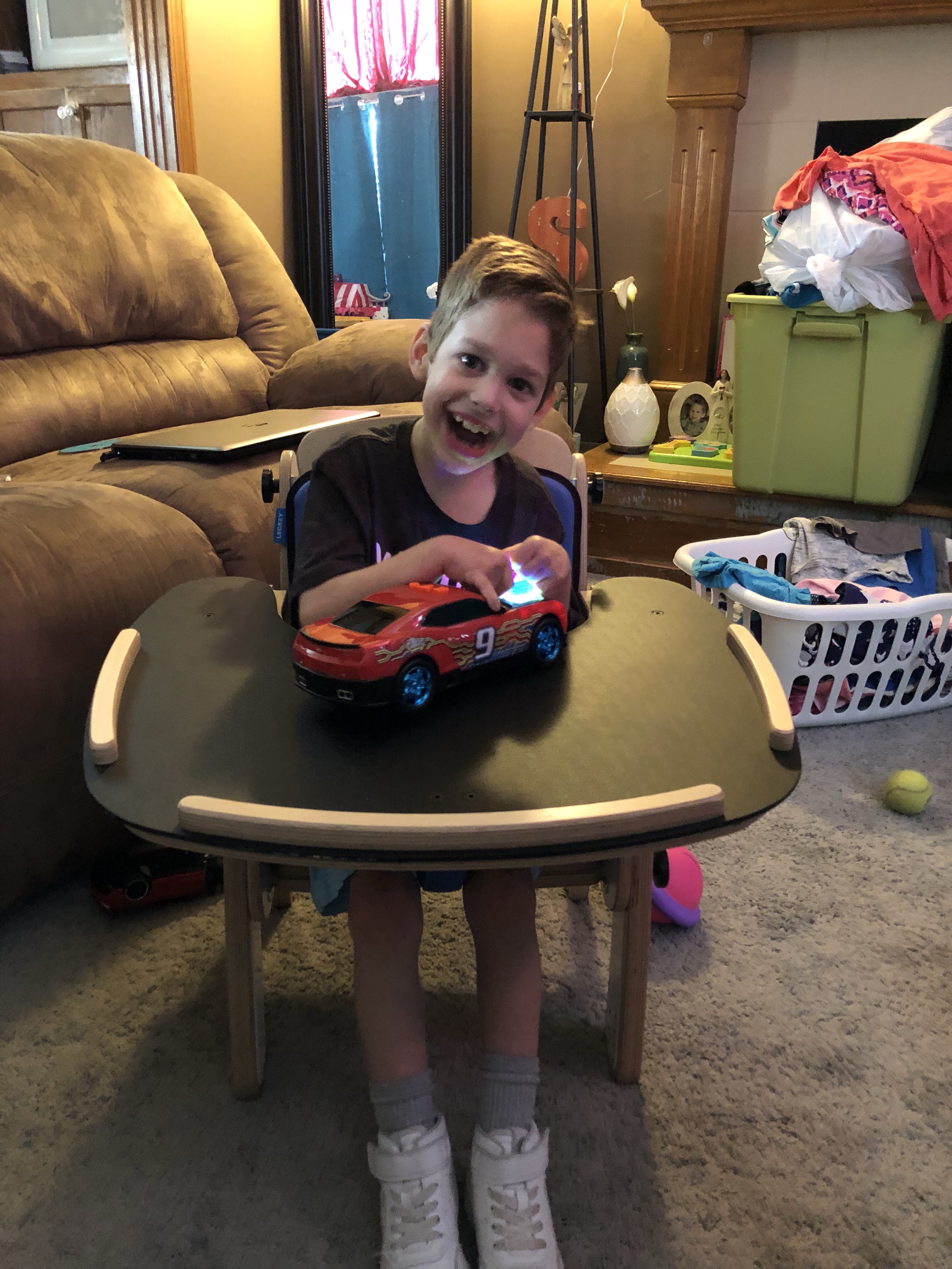 He opened presents of Fortnite characters, Hot Wheels cars, and a super big pack of Reese’s Peanut Butter Cups which are his favorite. His friends know him so well, a couple of them got him cars with buttons on top that he can push himself! They were all so incredibly thoughtful and so excited to watch him open their gift! He also got several gift cards and he’s so excited to go buy Xbox games that he can play with his adapted controller.